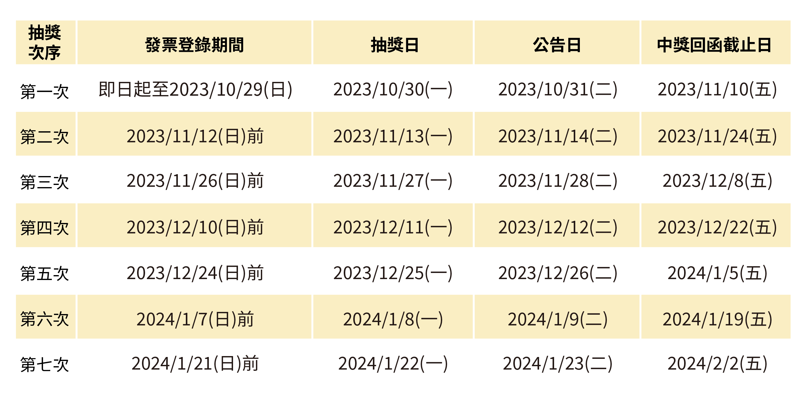 .活動期間共有7次開獎,請注意每次中獎回函截止時間,逾期不受理。