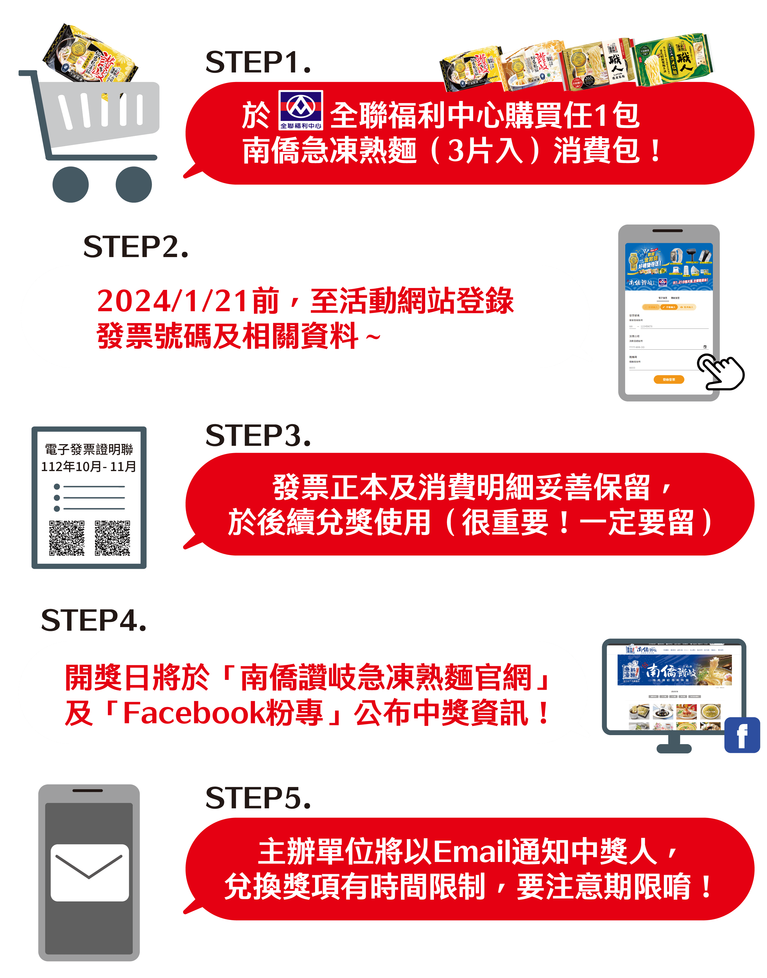 .抽獎結果公告於活動網站、南僑讚岐急凍熟麵官方網站與Facebook粉絲專頁。