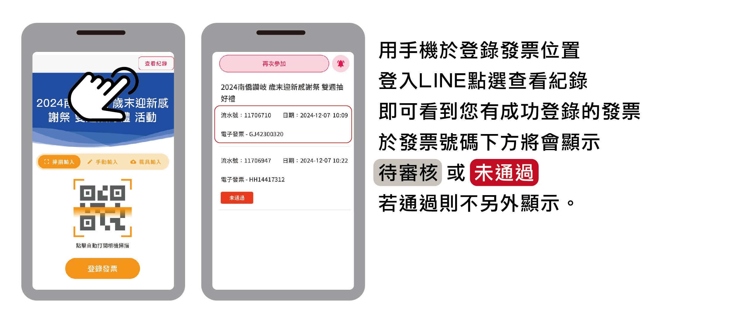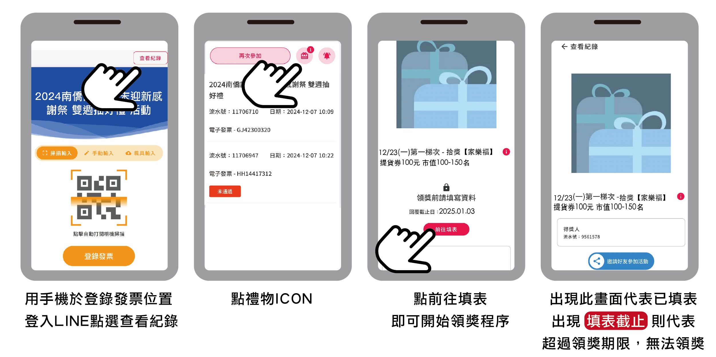 3.每張發票號碼僅可登錄乙次,且無法重複中獎,若因輸入資料錯誤,發票視同作廢,無法要求主辦單位修改,請輸入資料時請多加留意。