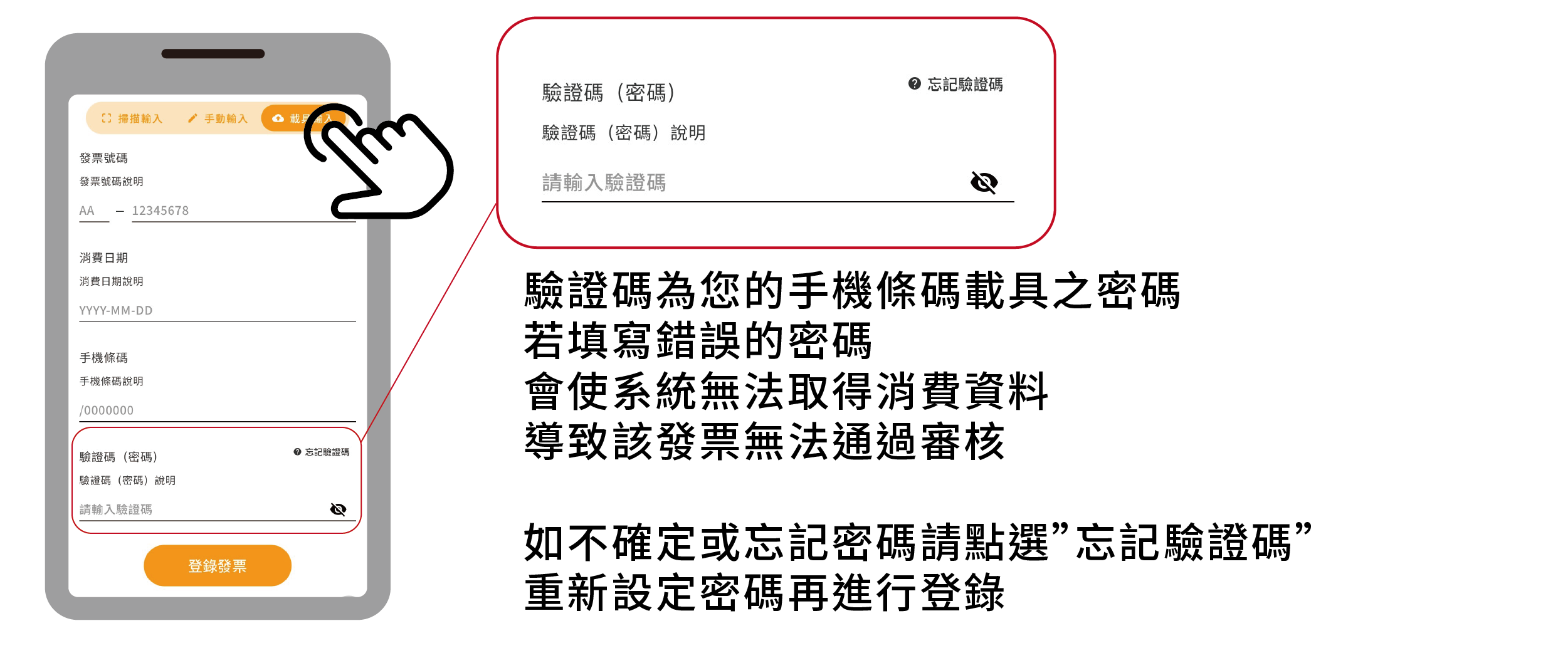 4.每張發票號碼僅可登錄乙次,若因輸入資料錯誤,發票視同作廢,無法要求主辦單位修改,輸入資料時請多加留意。
